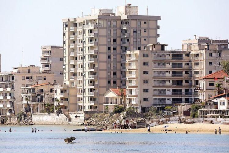 Mağusa'nın belediye plajından terk edilmiş şehrin otellerini ve deniz kıyısındaki evleri görmek mümkün kapalı maraş. Mağusa ekoloji projesi (famagusta ecocity project) çevre psikoloğu ceren boğaç, kapalı.
